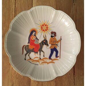 Vintage ‘84 AK Kaiser W Germany Porcelain Compote 5" Christmas Joseph Mary Jesus.