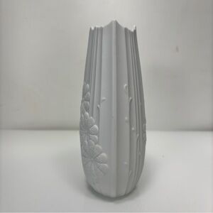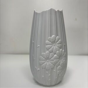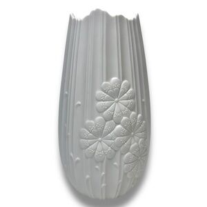 Vintage Kaiser White Bisque Porcelain Floral Pattern Jagged Edge Vase