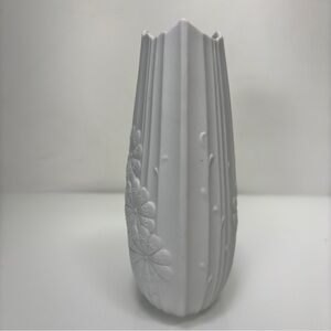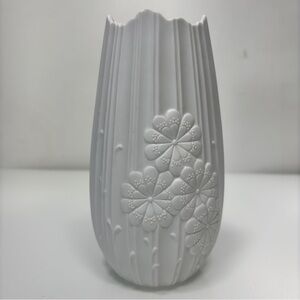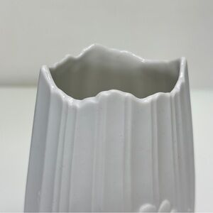 Vintage Kaiser White Bisque Porcelain Floral Pattern Jagged Edge Vase