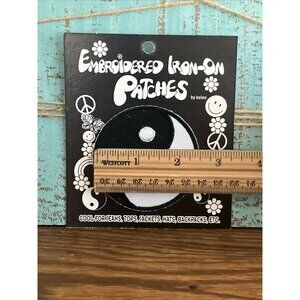 This is an embroidered iron-on patch from the brand Kalan. The patch features a Ying Yang design, which is a symbol of balance and harmony. It can be used as an embellishment or finish on various items, such as clothing, bags, or accessories. The patch is easy to apply by ironing it onto the desired surface.