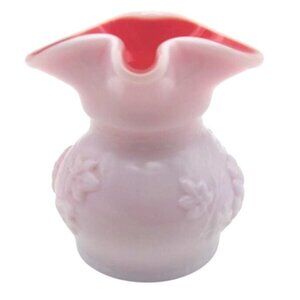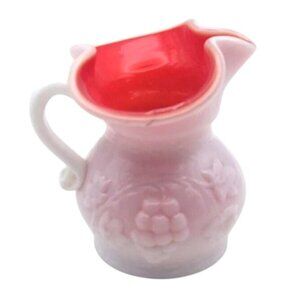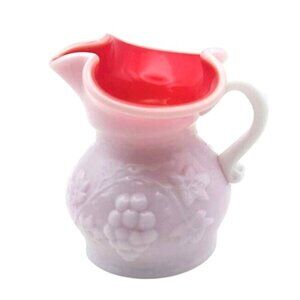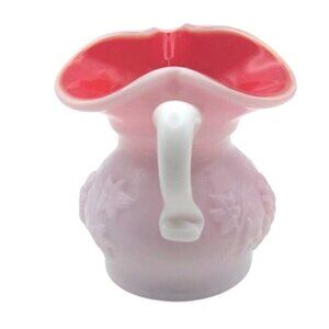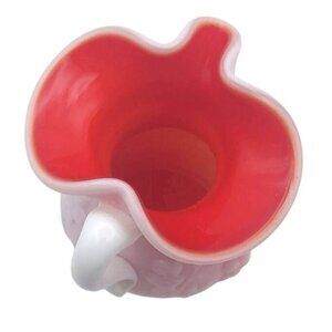 This charming vintage Kanawha creamer showcases delicate white milk glass with red cased interior and embossed grapevine design. A collectible for enthusiasts.