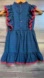 Vintage Kandy Ann Party Dress Navy Blue White Red Ruffle Sleeves Mock Neck 5