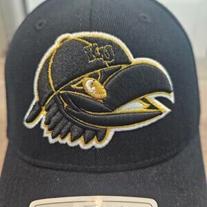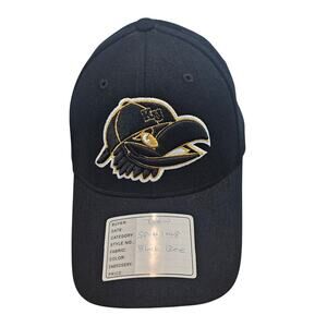 -Front Design: Embroidered jawhawk wearing a hat