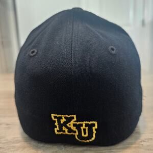 Vintage Kansas University Jayhawks Fitted Hat Cap 90s KU Black Yellow NCAA Retro