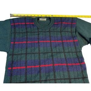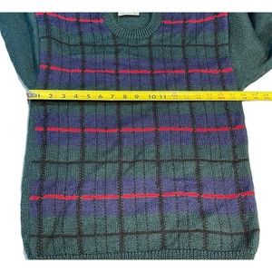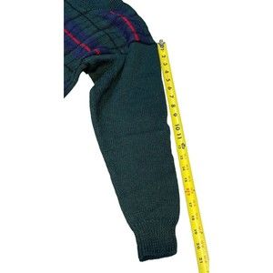 This vintage Kapai Crafts sweater is a cozy addition to any winter or fall wardrobe. The tight-knit wool fabric features a green striped fair isle pattern, with raglan sleeves and a crew neckline. The long sleeve sweater is a size small and fits regular, with a hand wash only garment care recommendation.