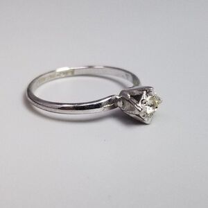 Vintage KaratClad 18K HGE White Gold Plated Solitaire Ring, Size 9 1/2 Band