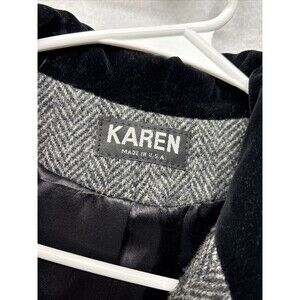 The Vintage Karen 100% Wool Herringbone Trench Coat is a stylish and timeless piece of women's outerwear from the 1970s. Made with high-quality wool in a classic herringbone pattern, this coat exudes sophistication and elegance. With a size small and a stylish gray color, this Union-made trench coat is perfect for adding a touch of vintage charm to any outfit. Whether worn casually or dressed up, this coat is sure to make a statement for any fashion-forward woman.