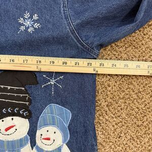 Vintage Karen Hart Womens Large Snowman Denim Jacket Winter GrandmaCore 90s