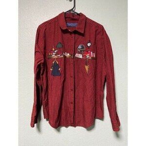 Vintage Karen Scott Back To School Women's Long Sleeve Plaid Button Up Shirt L
