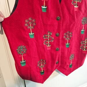 Vintage Karen Scott Christmas Vest Women Large Red Plants Y2K Preppy Granny Bows