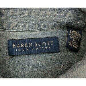 Celebrate the holiday season with nostalgic style in this Vintage Karen Scott Chambray Christmas Shirt! Made from chambray/denim, this women's size M shirt features charming embroidered holiday graphics that bring a festive touch to your look. With a full button front and long sleeves, this shirt is a versatile, cozy choice for layering during the holiday season. Originating from the 90s/Y2K era, it’s perfect for adding a unique, vintage vibe to any outfit. Measurements (laying flat): Chest - 20", Length - 28". In good pre-owned condition and ready to bring holiday cheer to your wardrobe!