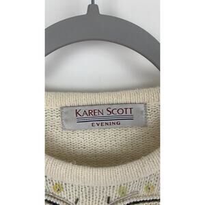 Vintage Karen Scott Evening Womens Cream Knitted Pullover Sweater Sequins Large