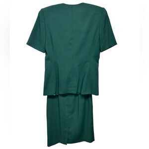 Vintage Karen Scott Dark Green Pencil Skirt Suit Set Matching Short Sleeve Blazer Skirt with Pockets