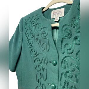 Vintage Karen Scott Green Pencil Skirt Suit Set Matching Short Sleeve Blazer