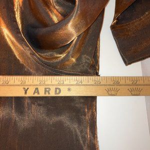 Gorgeous bronze iridescent blouse that'll add some pizazz to a casual or corporate look. Great for a party or going out. Has shoulder pads.