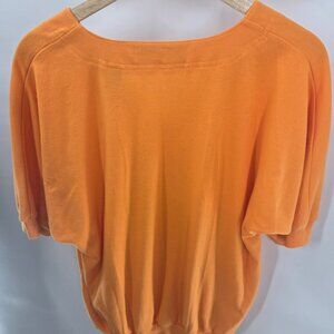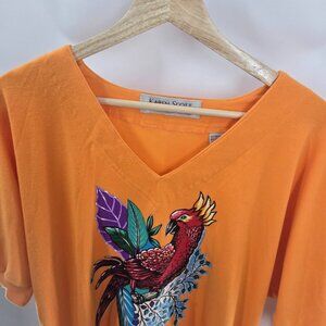 Vintage Karen Scott Orange Upcycled Lorikeet Parrot Applique Short Sleeved Top L