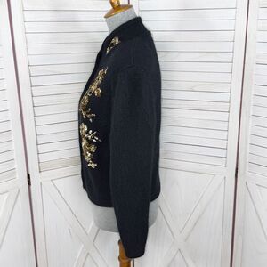Vintage Karen Scott Sequin Fuzzy Angora Wool Cardigan Sweater Black Gold Medium