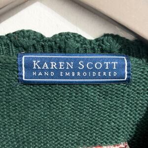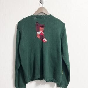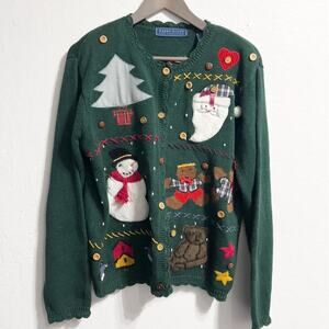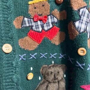 Vintage Karen Scott Sweater M Green Knit Santa Bear Holiday Christmas Ugly