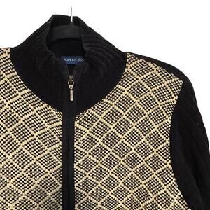 Karen Scott Women's Black & Beige Full Zip Cardigan Sweater