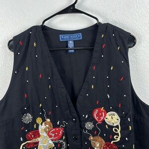 Vintage Karen Scott Women’s Y2K Black Cotton 2000 New Year Vest Millennial Sz 1X