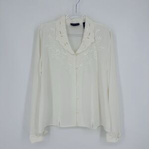 Vintage Karen Scott Button Up Blouse Fancy Collar Embroidered Ivory Womens Large