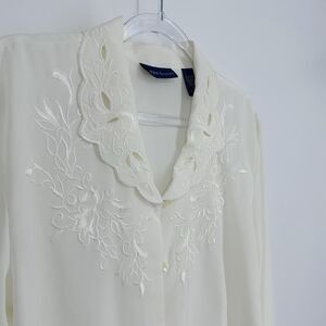 Vintage Karen Scott Button Up Blouse Fancy Collar Embroidered Ivory Womens Large