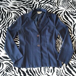 Vintage Karin Morgan two button up polyester women blue blazer jacket size 9/10