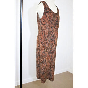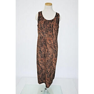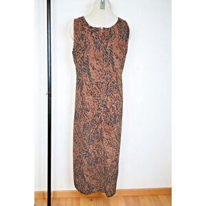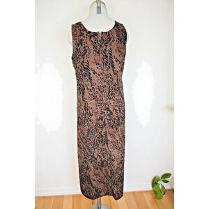 Vintage Karin Stevens Brown Black Animal Abstract Print Midi Dress – Size 12