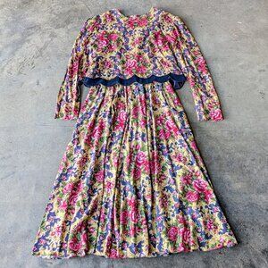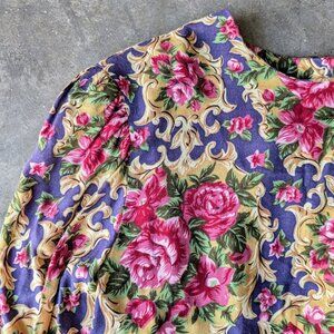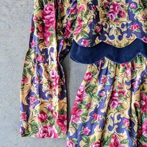 Vintage Karin Stevens Floral Two Piece Set Crop Jacket Midi Dress size 12