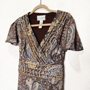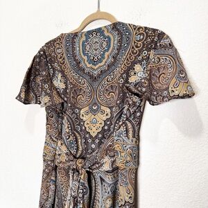 Vintage Karin Stevens Y2K Forest Fairy Wrap Flutter Sleeves Paisley Tie Dress
