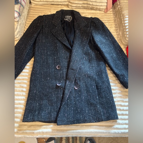 Vintage Karizma Black Tweed Double-Breasted Coat with Pink - Made in USA