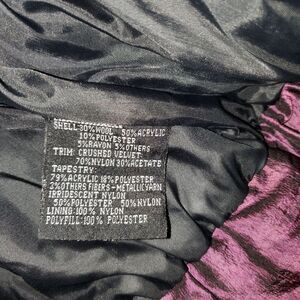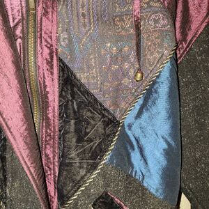 Amazing vintage piece in excellent condition! Has beautiful patchwork of velvet, wool, metallic nylon and tapestry pieces with tons of unique and interesting details. This piece has pockets and a gathered hem that gives a feminine flair. It is slightly oversized in my opinion but I think it's meant to have room for layers underneath.