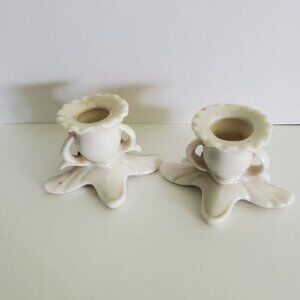 Vintage Karl Ens German Volkstedt 1950s Porcelain Rose Candlestick Holders. 2"x 2", Beautiful Rose Sculptured Design, Made in Germany. Good Pre-Owned Condition
