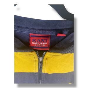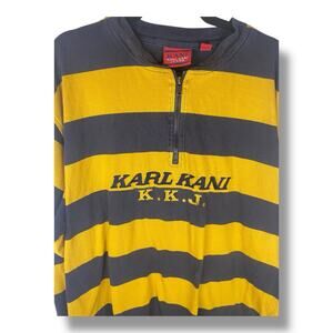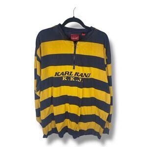 Vintage Karl Kani Striped Blue Yellow Men’s Size XL 1/4 Zip Long Sleeve