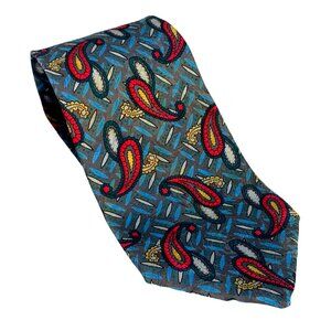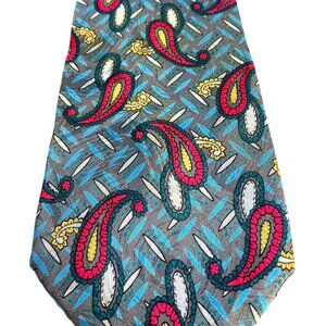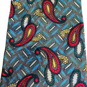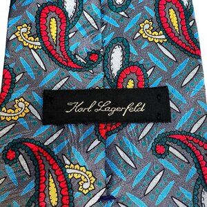 Vintage Karl Lagerfeld Luxury Designer Tie Collectors Item Teal Gray Red Yellow