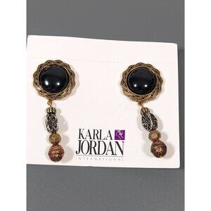 Vintage Karla Jordan Black Onyx Brass Copper Stacked Bead Dangle Pierced Earring