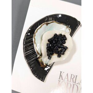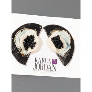 Vintage Karla Jordan Black White Blue Crescent Porcelain 3D Pierced Earrings