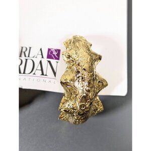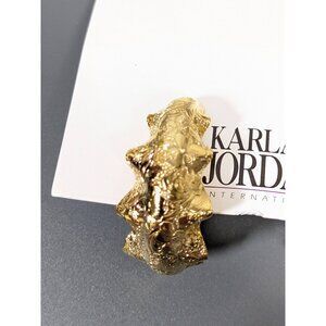 Vintage Karla Jordan Gold Tone Repousse Style Textured Bold Hoop Pierced Earring