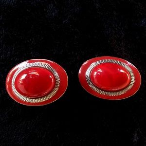 Vintage Karla Jordan - Red Silver Oval Earrings