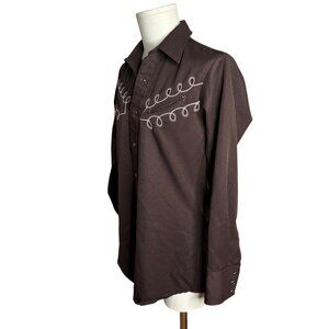 Vintage Karman Western Pearl Snap Shirt Brown Embroidered Long Sleeve Medium