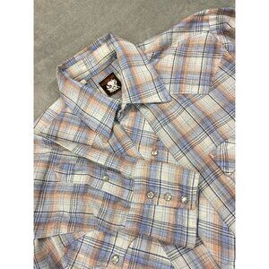 Karman Western Shirt Mens Medium Blue Red Orange Equestrian Wear Casual Cowboy