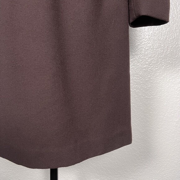 Vintage ASL Petites Long Sleeve Sheath Midi Dress Sz 4P Brown Velvet Lines. This vintage (1990s) long-sleeve sheath dress has a large asymmetric velvet strip crossing the body elegantly.