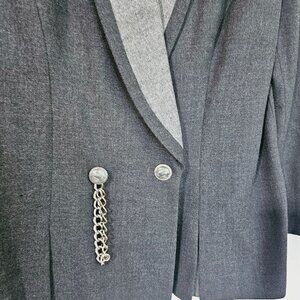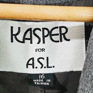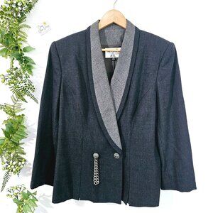 Vintage Kasper A.S.L. Womens Wool Blazer Sz 16 Chain Detail Gray & Black《907》J