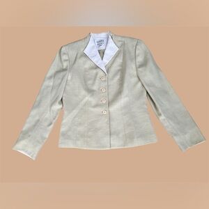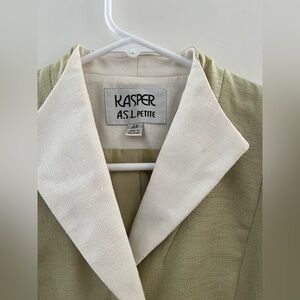 Vintage Kasper Blazer Jacket Sage Green White Collar ASL Petite Size 4