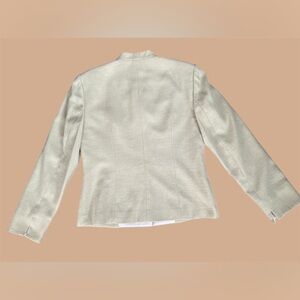 Add a touch of classic elegance to your wardrobe with this vintage Kasper blazer from the ASL Petite line. Featuring a flattering tailored fit, beautiful sage green fabric, and a crisp white notched collar, this jacket is perfect for both work and elevated casual wear.