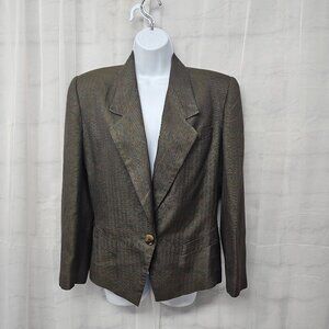 Vintage Kasper Brown Rust Plaid Single Breasted Blazer Office 10