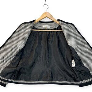 Vintage Kasper Jacket Black White Houndstooth Jewel Neck Short Open Blazer Sz 10