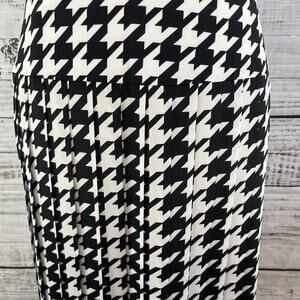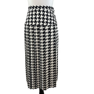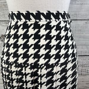 Vintage Kasper Skirt size 8 Black Ivory Hounds Tooth Pleated Midi Career Modest