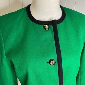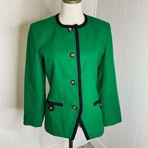 Vintage Kasper Women's Size 4 Green Black 100% Wool Regal Blazer Jacket USA
