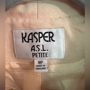 Kasper's classic look never goes out of style. This skirt suit is very classy and flattering. The skirt falls just above the knee. Free from rips, tears, stains or odors.